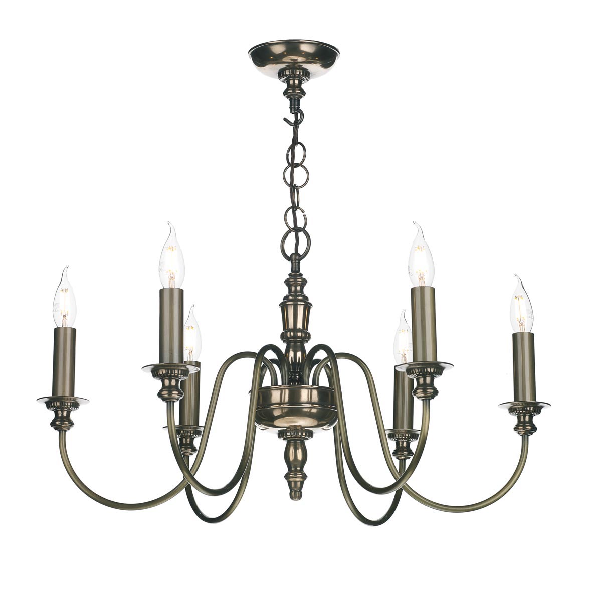 - Hand finished antique brass arms