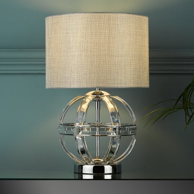 • A thoroughly modern table light from Laura Ashley, the pretty open globe formed by encircling faceted crystal bands trimmed by metal with a polished chrome finish.
